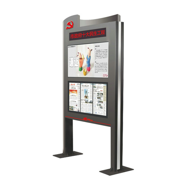 電子閱報欄,又稱戶外電子報刊欄、戶外智能電子閱報欄,顧名思義,是將傳統(tǒng)閱報欄上的紙質(zhì)展示信息電子化、智能化之后的新產(chǎn)物。自問世以來,電子閱報欄以更直觀、更快速、更飽滿的傳播效果,廣泛應(yīng)用于機關(guān)單位、街道社區(qū),大型企業(yè)、學校、車站、商業(yè)機構(gòu)、寫字樓及旅游景點。