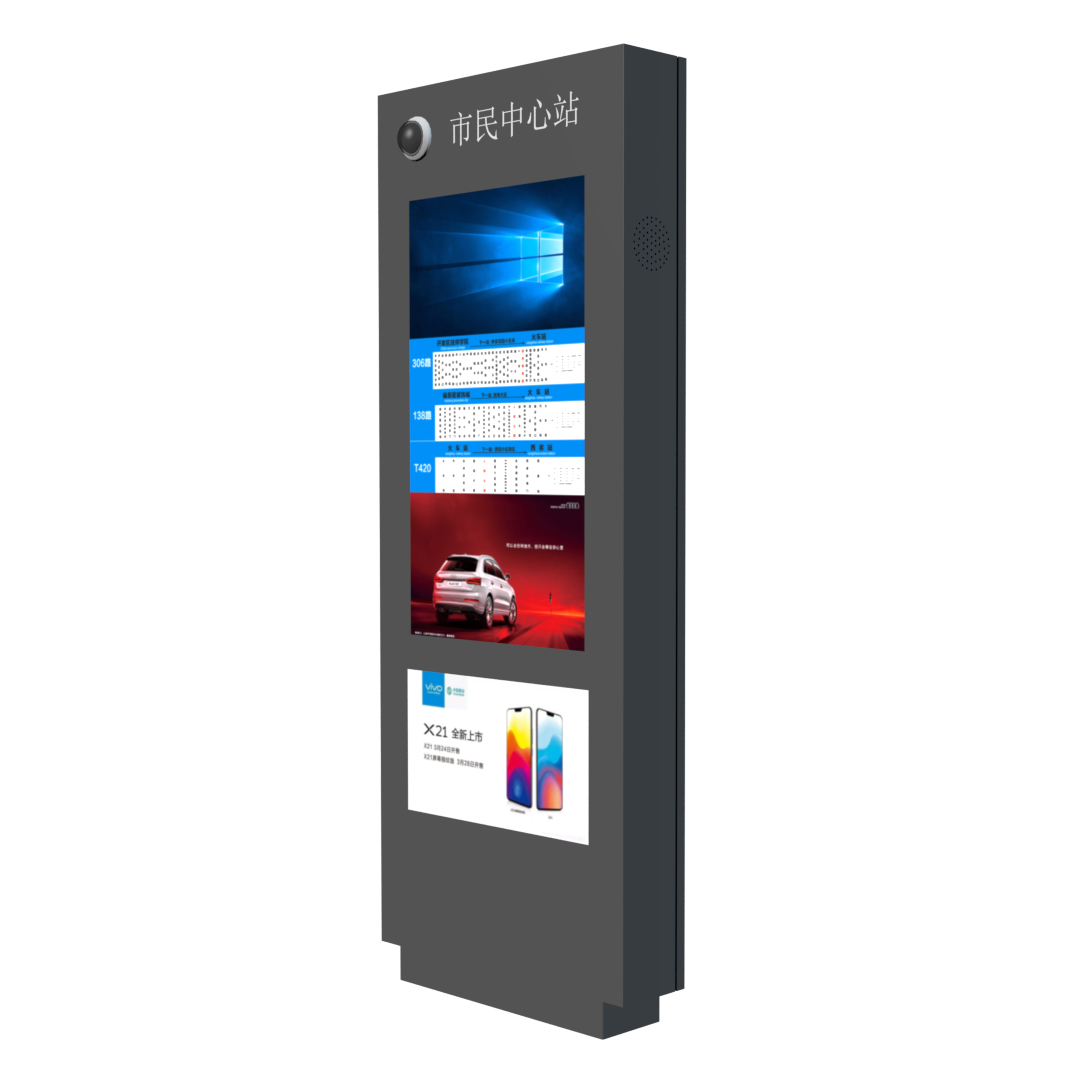 公交電子站牌戶外高亮:工業(yè)級戶外液晶顯示屏,亮度達到1500-2500流明,強光下可視;